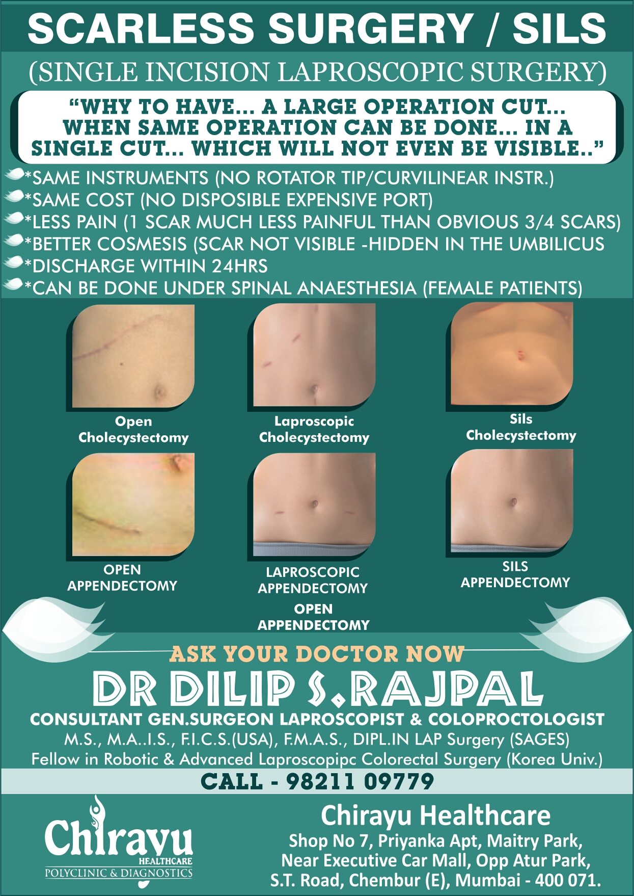 Why conventional multipart laparoscopic surgery when same surgery can be managed in a single cut. Contact Www.chirayuhealthcare.co.in